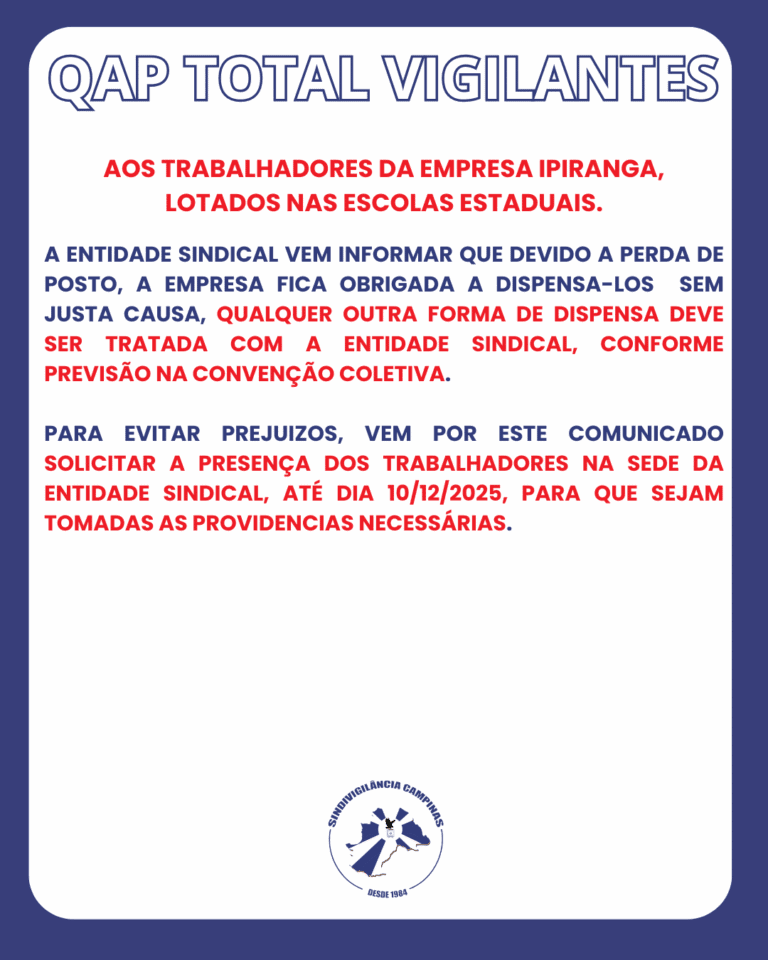 Sindicato de Categoria Profissional Diferenciada, Empregados e Trabalhadores do Ramo de Atividade de Vigilância e Segurança Privada de Campinas e Região